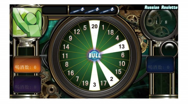 喝酒游戲,玩家投中屏幕上有酒的分區就要受罰喝酒,投中有酒分區之后,下輪有酒和沒酒的分區會隨機更換,紅心區始終都是沒酒。