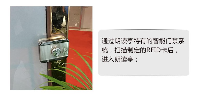 1、通過(guò)朗讀亭特有的智能門(mén)禁系統(tǒng),掃描制定的RFID卡后,進(jìn)入朗讀亭;