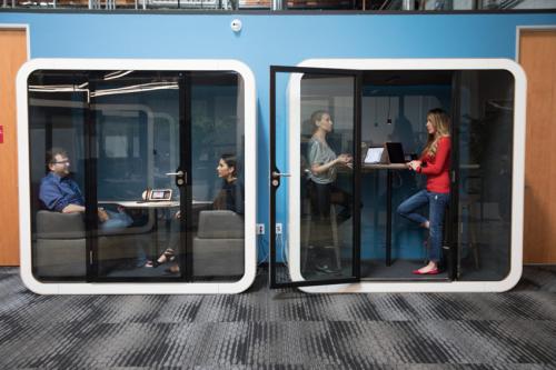 隱私倉采用90%的冷軋鋼制造,整體外觀造型顯得很年輕、時尚,顏色也是可以隨意搭配不同主題的裝修風格,建成后可隨時移動至辦公空間的任何角落;而在隱私性保護方面,隱私倉可對辦公場所中的各種聲音(包括電話、談話及咳嗽等)作出一定程度的隔離,而隱私倉內的聲音較難傳出艙外,以保證員工私密性需求。