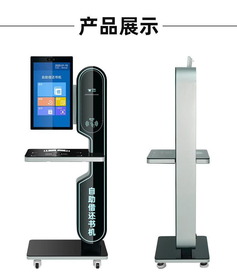 自助借還書機是一臺可對粘貼有RFID標簽的流通資料進行掃描、識別和借還處理的立式的設備系統,用于讀者自助進行流通資料的借還操作,配備觸摸顯示屏操作系統,支持多種登錄方式包括不限于人臉識別、身份證、讀者證、賬號密碼等,通過簡單易操作的人機交流界面快速準確地完成借還書操作。