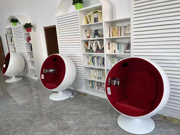 太空艙,也叫視聽休閑蛋椅,它的外形設計類似于一枚蛋殼,外層采用先進的玻璃鋼材質,既保證美觀又保證了強度,內部設置了高彈海綿軟墊及內附柔軟的海綿回彈布,讓您感受寧靜的舒適感。
